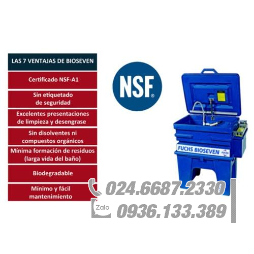 Fuchs Bioseven V2, máy rửa sinh học thế hệ mới, làm sạch các bộ phận không dùng dung môi, đảm bảo sức khỏe của nhân viên và môi trường. Nó hoạt động dựa trên nguyên tắc tái tạo tự nhiên, sử dụng vi sinh vật để biến đổi các chất ô nhiễm thành nguồn thực phẩm và năng lượng. Nó hoạt động với dung dịch làm sạch Renoclean Aquabio, có độ pH trung tính, hoạt động ở 38°C, không dung môi, không gây nguy hiểm và thân thiện với môi trường, cũng như với các viên vi sinh Renoclean Bioseven, giúp phân hủy bụi bẩn và tái tạo vĩnh viễn dung dịch, đảm bảo làm sạch hiệu quả, không để lại cặn trên các bộ phận và hạn chế tiêu hao, vận hành bảo trì và lãng phí.
