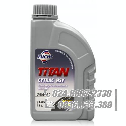 Titan Cytrac HSY 75W-90 của Fuchs là loại dầu hộp số và hộp số đa chức năng tổng hợp hoàn toàn để sử dụng trong cả hộp số tay chịu tải cao và bộ truyền động hypoid của xe thương mại hạng nặng. Công thức của nó đảm bảo hoạt động thích hợp với nhiều vật liệu đồng bộ trong hộp số tay.