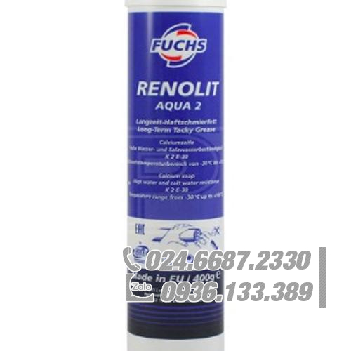 Renolit Aqua 2 của Fuchs là loại mỡ chịu nước thích hợp cho mọi ứng dụng yêu cầu khả năng chống nước, nước muối hoặc chất lỏng cắt bằng cách ngâm hoặc rửa sạch.