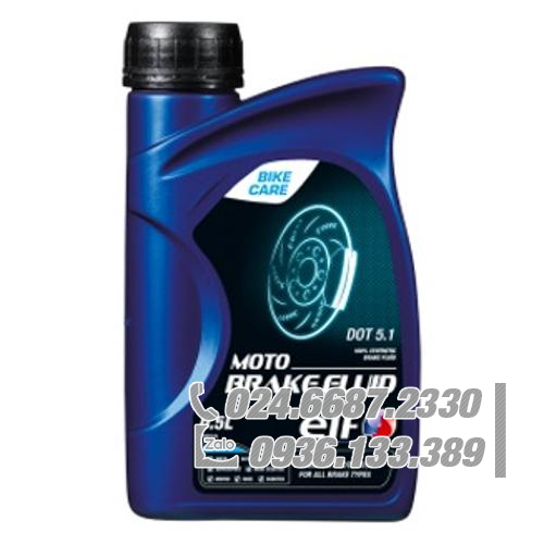 Moto Brake Fluid Dot 5.1 là loại dầu phanh tổng hợp hiệu suất cao. Nó đặc biệt thích hợp cho các hệ thống phanh hoạt động trong điều kiện rất khắc nghiệt, đặc biệt trên các xe gắn máy có phanh đĩa và được sử dụng để thi đấu. Chất lỏng tổng hợp này có thể trộn được với tất cả các chất lỏng tổng hợp hóa học khác thuộc loại DOT 3, DOT 4 và DOT 5.1 ngoại trừ chất lỏng silicon DOT 5 và tất cả các chất lỏng có gốc khoáng (chất lỏng LHM đặc biệt và các loại khác).