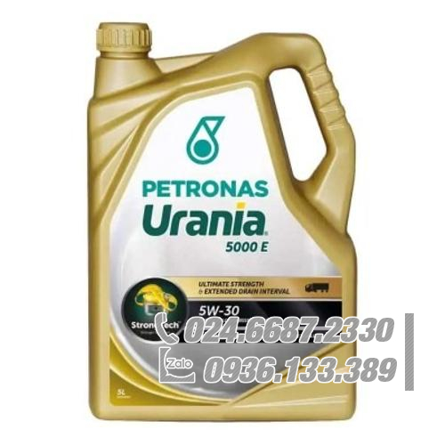 Loại dầu động cơ tổng hợp hoàn toàn này giúp thiết bị hoạt động đáng tin cậy nhờ công nghệ StrongTech mà Petronas đã phát triển để đảm bảo một lớp màng đặc biệt chắc chắn mang lại hiệu suất tối ưu và tuổi thọ động cơ dài, ngay cả khi thời gian thay dầu kéo dài.. Là loại dầu có SAPS thấp, Petronas Urania 5000 E 5W-30 phù hợp cho các loại xe tải nặng chạy dầu diesel đạt tiêu chuẩn khí thải Euro V và Euro VI. Điều này bao gồm các động cơ công suất cao, phát thải thấp mới hơn sử dụng công nghệ EGR, SCR, DPF và DOC trong hệ thống kiểm soát khí thải của chúng. Nó cũng có thể được sử dụng với các loại xe địa hình và địa hình cũ có động cơ diesel hút khí tự nhiên hoặc tăng áp chạy bằng nhiều dạng động cơ diesel khác nhau.