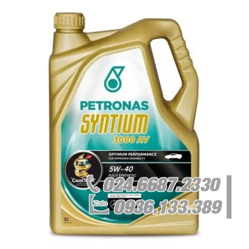 PETRONAS Syntium 3000 AV 5W-40 SN là chất bôi trơn tổng hợp hoàn toàn được pha chế với công nghệ °CoolTech™ đã được cấp bằng sáng chế, được thiết kế để kiểm soát nhiệt, chống oxy hóa và ngăn chặn sự xuống cấp của dầu cũng như tích tụ cặn bẩn nhằm bảo vệ các bộ phận và duy trì hiệu suất động cơ tối ưu cho động cơ khoảng thời gian xả tối đa.. Nó được thiết kế đặc biệt cho xe khách, xe tải và SUV sử dụng động cơ xăng và diesel phun xăng trực tiếp tăng áp của các nhà sản xuất ô tô như Volkswagen và Mercedes-Benz. Nó cũng phù hợp với các phương tiện chạy bằng nhiên liệu sinh học hoặc được trang bị hệ thống xả xử lý sau và bộ chuyển đổi xúc tác, cùng với kim phun nhiên liệu, bộ tăng áp và nhiều van hoạt động trong điều kiện khắc nghiệt.