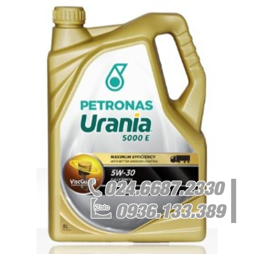 Petronas Urania 5000 E 5W-30 là loại dầu có SAPS thấp, phù hợp cho các ứng dụng diesel hạng nặng Euro VI và Euro V bao gồm các động cơ hiện đại, công suất cao, ít khí thải được trang bị hệ thống kiểm soát khí thải sử dụng công nghệ DPF, SCR, DOC và EGR. Nó cũng thích hợp cho các thế hệ động cơ diesel tăng áp và hút khí tự nhiên cũ, cả trên đường cao tốc và địa hình, chạy bằng dầu diesel và dầu diesel sinh học có hàm lượng lưu huỳnh cao hoặc cực thấp. Thích hợp cho tất cả các OEM cần CNG để vận chuyển.