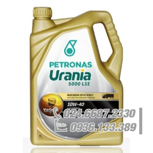 Petronas Urania 5000 LSE 10W-40 là loại dầu động cơ SAPS thấp phù hợp với các ứng dụng diesel hạng nặng Euro VI và Euro V bao gồm các động cơ hiện đại, công suất cao, lượng khí thải thấp được trang bị hệ thống kiểm soát khí thải sử dụng công nghệ DPF, SCR, DOC và EGR. Nó cũng thích hợp cho động cơ diesel tăng áp và hút khí tự nhiên mới và cũ, cả trên đường cao tốc và ngoài đường cao tốc, chạy bằng dầu diesel và diesel sinh học có hàm lượng lưu huỳnh cao hoặc cực thấp và sử dụng cho các phương tiện chạy bằng động cơ xăng.