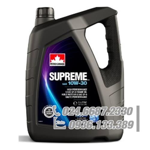 Petro-Canada Supreme 10W-30 là loại dầu động cơ tiên tiến cao cấp được thiết kế để bôi trơn động cơ của các loại xe khách, xe tải nhỏ, xe CUV, SUV và xe tải hạng nhẹ chạy bằng xăng và ethanol (lên đến E85) ngày nay. Với các động cơ công suất lớn ngày nay, Dầu Động cơ Tối cao có thể giúp kéo dài tuổi thọ động cơ bằng cách bôi trơn các bộ phận quan trọng một cách hiệu quả. Chúng cũng cung cấp khả năng bảo vệ nâng cao cho các hệ thống kiểm soát khí thải và bộ tăng áp mới nhất.