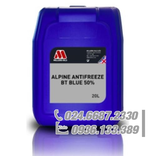 Alpine Antifreeze BT Blue 50% của Millers Oils là chất chống đông monoethylene glycol (MEG) màu xanh ức chế ăn mòn chất lượng cao vượt tiêu chuẩn BS 6580:2010, không chứa nitrit, amin hoặc phốt phát (không chứa NAP).