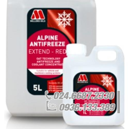 Alpine Antifreeze Extend Red Cô đặc từ Millers Oils là chất làm mát và chống đông ô tô gốc ethylene glycol, thích hợp để sử dụng quanh năm trong hệ thống làm mát của tất cả các động cơ đốt trong. Sử dụng OAT (Công nghệ axit hữu cơ). Sản phẩm này không chứa nitrat, amin, phốt phát, borat, silicat và không có chất phụ gia khoáng khác.