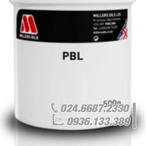 PBL của Millers Oils là loại mỡ xà phòng lithium NLGI 2.5 được thiết kế cho các ứng dụng chịu tải nặng, đòi hỏi độ bám dính, khả năng chống nước, tải sốc và bảo vệ chống ăn mòn tốt. Loại mỡ này có hàm lượng than chì rắn bôi trơn cao giúp giữ cho các bề mặt làm việc tách rời nhau và kéo dài đáng kể tuổi thọ của các bộ phận.