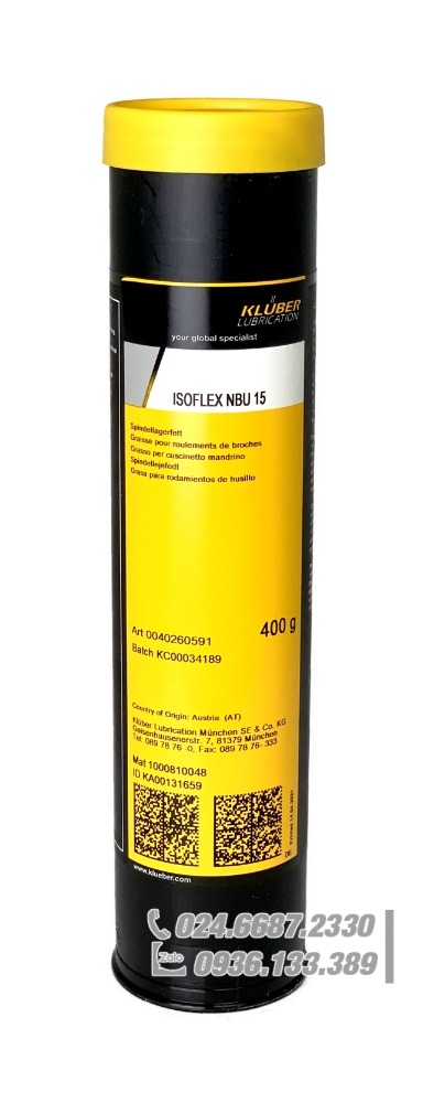 Klüber ISOFLEX NBU 15 Mỡ ổ trục chính tốc độ cao – 400g / Klüber ISOFLEX NBU 15 High speed spindle bearing grease – 400g