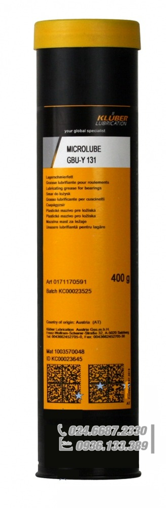 - MICROLUBE GBU-Y 131 là loại mỡ đặc biệt kết hợp dầu gốc bán tổng hợp và chất làm đặc xà phòng phức hợp kim loại. Sự kết hợp đặc biệt này ảnh hưởng lớn đến khả năng chịu tải, khả năng chống nước và đặc tính chống ăn mòn của mỡ.