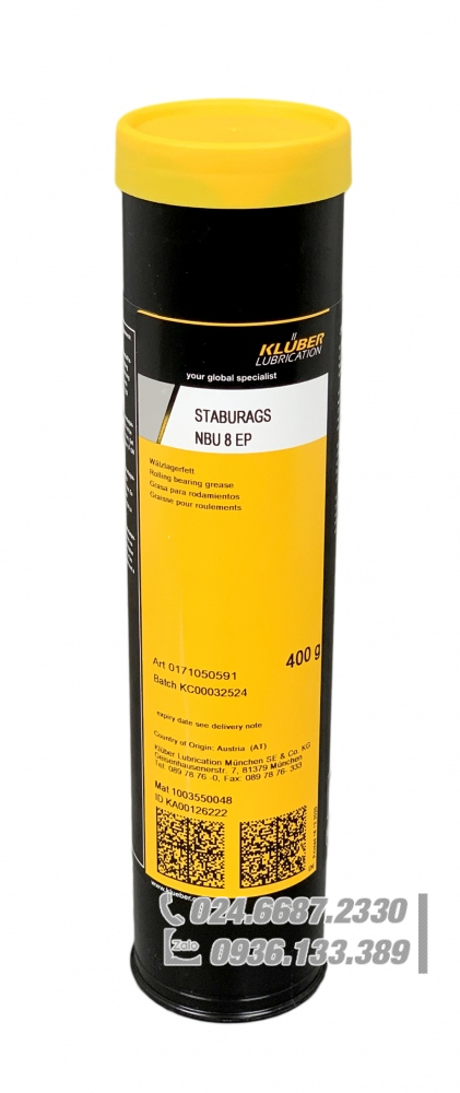- STABURAGS NBU 8 EP là mỡ bôi trơn gốc dầu khoáng và xà phòng phức hợp bari. Nó đã được sử dụng thành công trong nhiều năm như một loại mỡ dài hạn cho các ổ trục chịu tải trọng riêng cao. Đặc tính chống mài mòn tốt của nó được tăng cường nhờ chất làm đặc phức hợp bari.