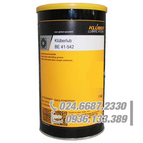 Klüberlub BE 41-542 là mỡ bôi trơn hạng nặng ("mỡ cực áp") dựa trên dầu khoáng có độ nhớt cao, xà phòng lithium đặc biệt, EP/AW, phụ gia chống oxy hóa và chống ăn mòn.