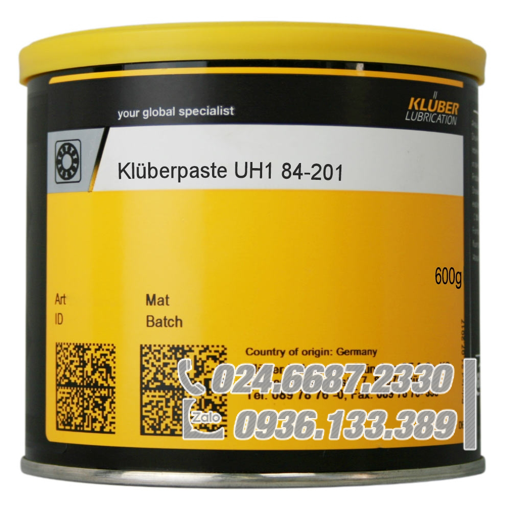 - Klüberpaste UH1 84-201 là chất bôi trơn và lắp ráp màu trắng dành cho mục đích bôi trơn và lắp ráp linh hoạt trong môi trường nhạy cảm về mặt vệ sinh.
