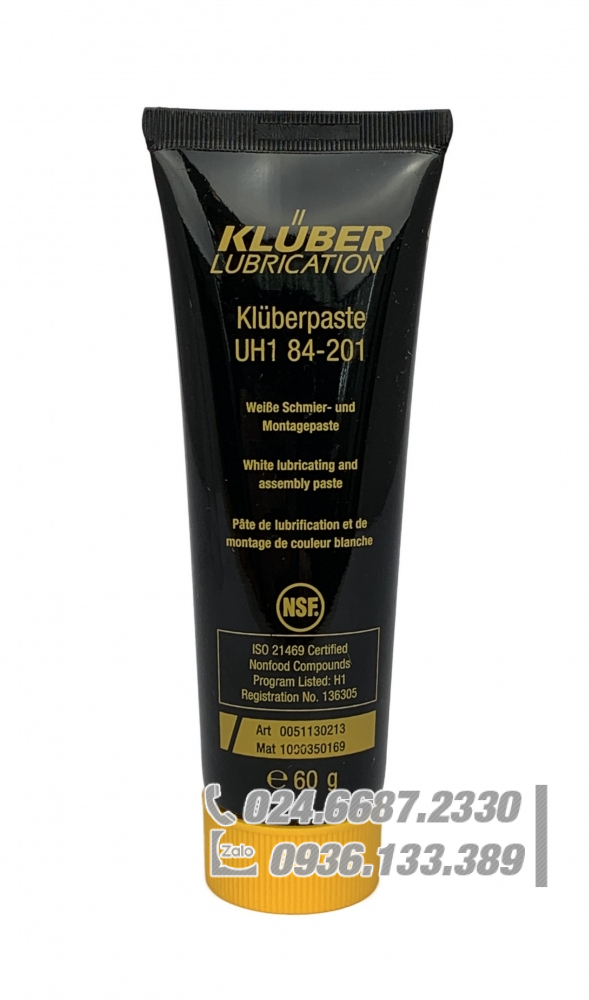 • Klüberpaste UH1 84-201 là chất bôi trơn và lắp ráp màu trắng dành cho mục đích bôi trơn và lắp ráp linh hoạt trong môi trường nhạy cảm về mặt vệ sinh.
