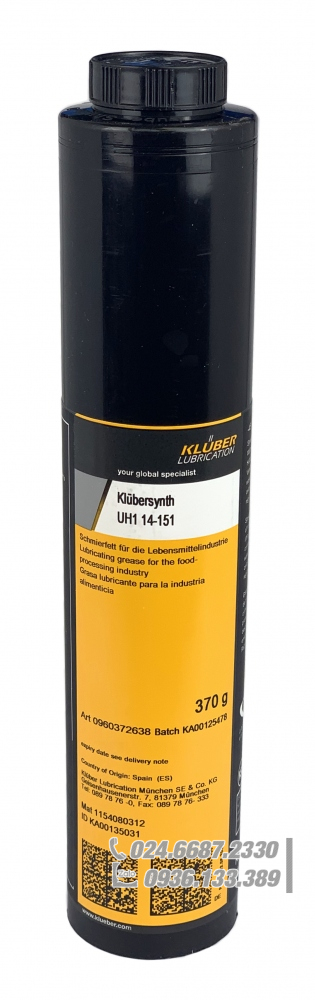 Klübersynth UH1 14-151 được phát triển đặc biệt cho ngành chế biến thực phẩm và dược phẩm. Klübersynth UH1 14-151 thể hiện đặc tính chống mài mòn, chống nước và chống ăn mòn tốt cũng như độ ổn định oxy hóa và lão hóa cao.