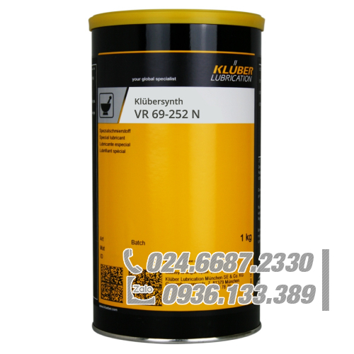 • Klübersynth VR 69-252 N là mỡ bôi trơn có màu sáng, được chế tạo riêng, có độ bám dính cao dựa trên dầu béo, xà phòng canxi và PTFE.