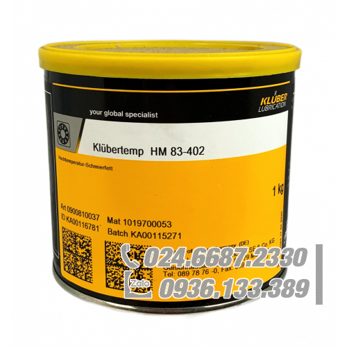 được thiết kế đặc biệt để bôi trơn ở nhiệt độ cao. Do độ nhớt của dầu gốc và khả năng chịu tải cao, mỡ bôi trơn Klübertemp HM đặc biệt thích hợp cho việc bôi trơn lần đầu và bôi trơn lại các ổ lăn tốc độ trung bình chịu nhiệt độ và tải trọng cao. - Nội dung: lon 1kg