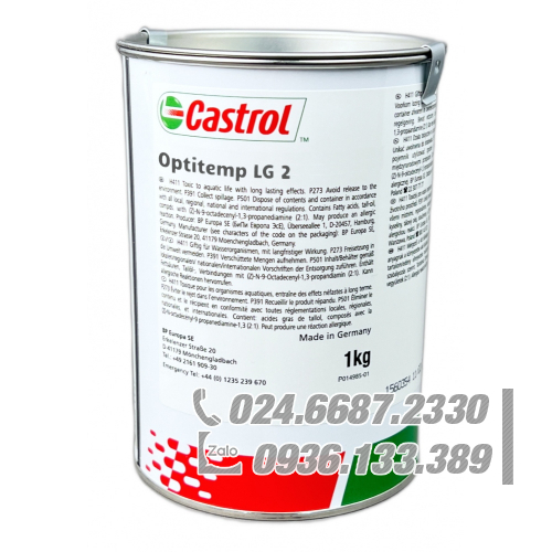 Castrol Optitemp LG 2 Mỡ nhiệt độ thấp lon 1kg / Castrol Optitemp LG 2 Low-temperature grease 1kg can