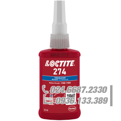 Loctite 274 Khóa ren trung bình màu xanh chai 50ml / Loctite 274 Medium strength threadlocker blue 50ml bottle
