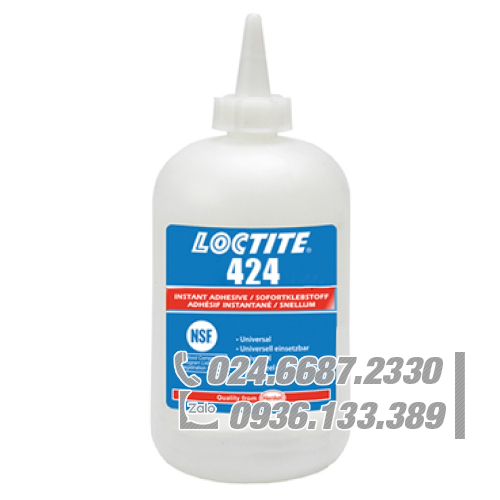 LOCTITE® 424 là chất kết dính tức thời gốc etyl trong suốt, không màu, độ nhớt thấp. Thích hợp cho kim loại, cao su và nhựa, nó cũng thích hợp cho polyolefin kết hợp với Primer LOCTITE® SF 770 hoặc LOCTITE® SF 7239. Nó có thời gian cố định từ 2 – 10 giây.