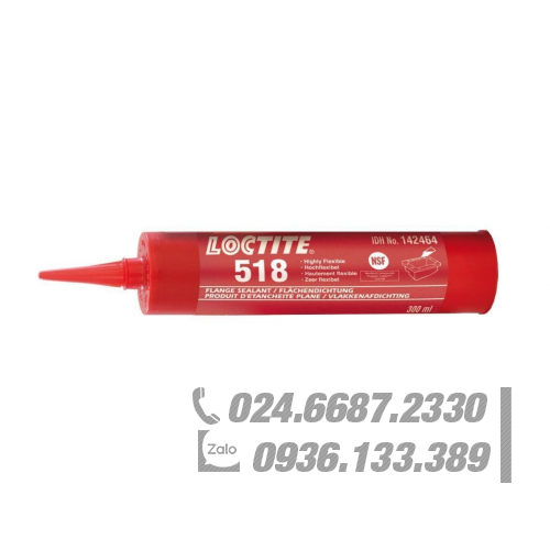 Loctite 518 là vật liệu đệm kỵ khí được thiết kế để sử dụng trên các bề mặt tiếp xúc có mặt bích bằng sắt, nhôm và thép cứng. Nó đóng rắn khi bị giới hạn trong điều kiện không có không khí giữa các bề mặt kim loại khít nhau.