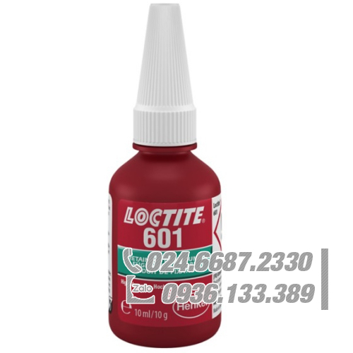 LOCTITE® 601 là hợp chất giữ lại gốc este dimethacrylate màu xanh lá cây, kỵ khí, độ nhớt thấp, tốc độ xử lý trung bình, thích hợp cho tối đa. khe hở đường kính 0,1 mm. Nó là một sản phẩm có độ bền cao cho các ứng dụng yêu cầu liên kết vĩnh viễn. Thời gian cố định trên thép là 25 phút và nhiệt độ sử dụng từ -55ºC đến +150ºC. Huỳnh quang cho phép theo dõi sự hiện diện của sản phẩm.