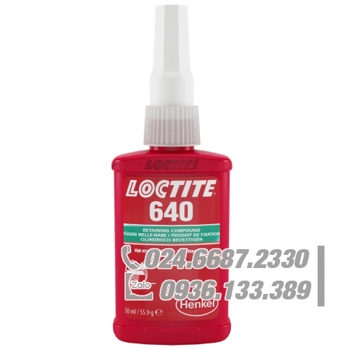 LOCTITE® 640 là hợp chất giữ lại gốc este methacrylate màu xanh lục, kỵ khí, độ nhớt thấp, lý tưởng cho các bộ phận cần thời gian định vị lâu hơn. Thời gian cố định trên thép là 2 h. Cũng được sử dụng cho các kim loại hoạt động như đồng thau. Đây là sản phẩm có độ bền cao với khả năng chịu nhiệt độ tốt. tối đa. độ hở đường kính là 0,1 mm và nhiệt độ sử dụng là -55 đến +175ºC. Huỳnh quang cho phép theo dõi sự hiện diện của sản phẩm.
