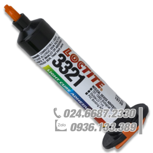LOCTITE® AA 3321 là chất kết dính tức thời gốc acrylic, trong suốt, màu vàng nhạt, được xử lý bằng ánh sáng, phổ quát, thích hợp cho kim loại và nhựa nhạy cảm với ứng suất với tốc độ đóng rắn cao, theo yêu cầu. Độ sâu chữa bệnh là> 13 mm. Tack thời gian miễn phí> 30 giây. Thời gian cố định là 12 giây. Độ cứng bờ: D 53. Độ nhớt rất cao 5.500 mPa·s. Đạt tiêu chuẩn ISO 10993.