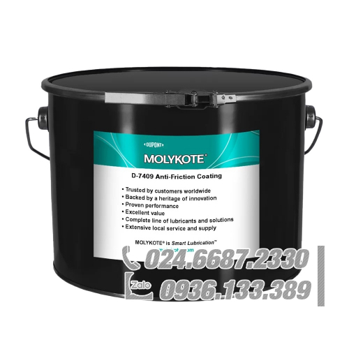 Molykote D-7409 Lớp phủ bôi trơn dạng màng khô được xử lý nhiệt, gốc dung môi hữu cơ với than chì rắn và molybdenum disulfide cho khả năng chịu tải cao và chống ăn mòn tuyệt vời