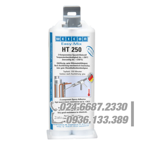 Keo epoxy 2 thành phần Weicon Easy-Mix HT 250 màu xám hộp 50ml / Weicon Easy-Mix HT 250 2-component epoxy adhesive grey 50ml cartridge